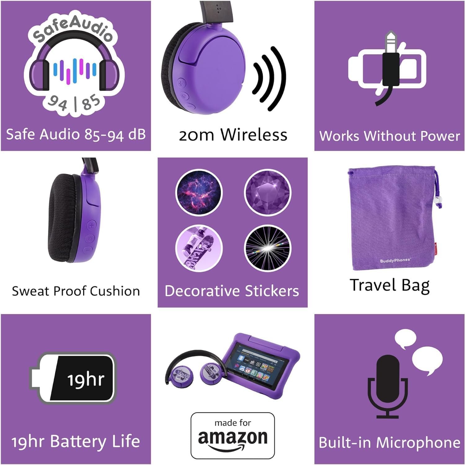 • Wireless and safe audio for ages 8–15